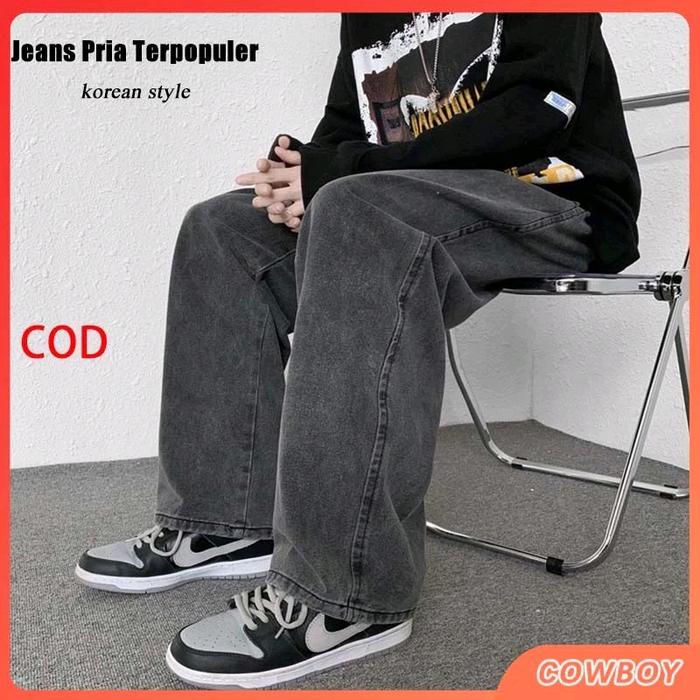 CELANA JEANS PRIA PANJANG SNOW BLACK CELANA JEANS PRIA KOREAN STYLE ORIGINAL LOOSE CELANA JEANS OVERSIZE DENIM SANTAI STRAIGHT HITAM BAGGY NYAMAN STRETCH SLIMFIT CIPUNG BAGGY JEANS - SNOW GREEY, 27
