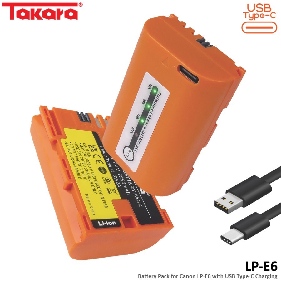 Takara LP-E6 / E6NH Battery Baterai with USB Type-C for Canon Camera