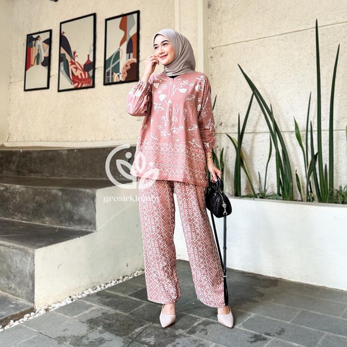 ONE SET LUSIANA RAYON PREMIUM BUSUI SETELAN WANITA ATASAN BAWAHAN CELANA PANJANG BATIK ADEM NYAMAN TEBAL - LUSIANA HITAM, JUMBO