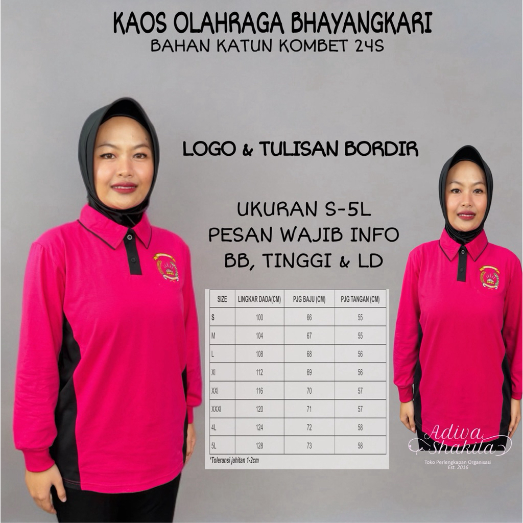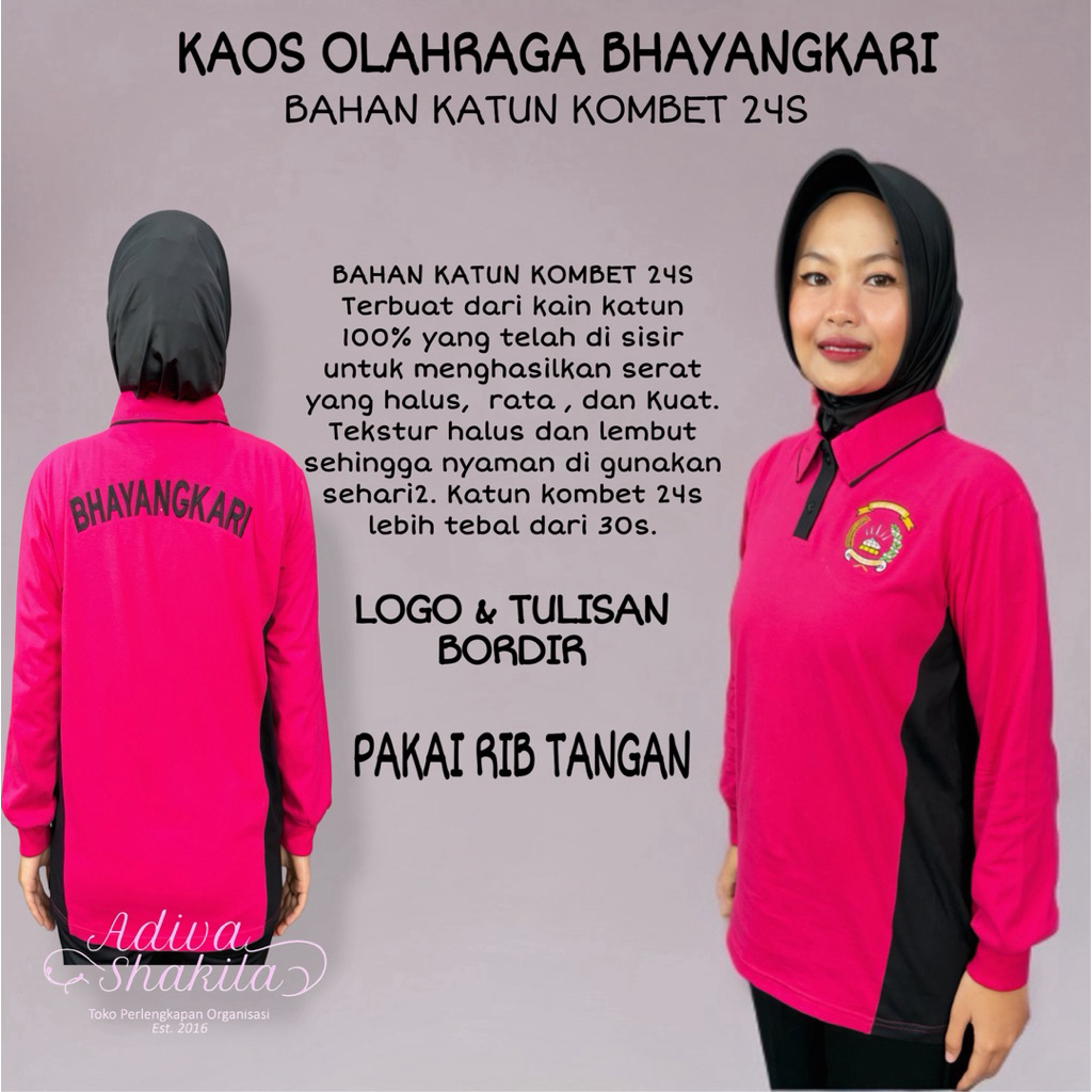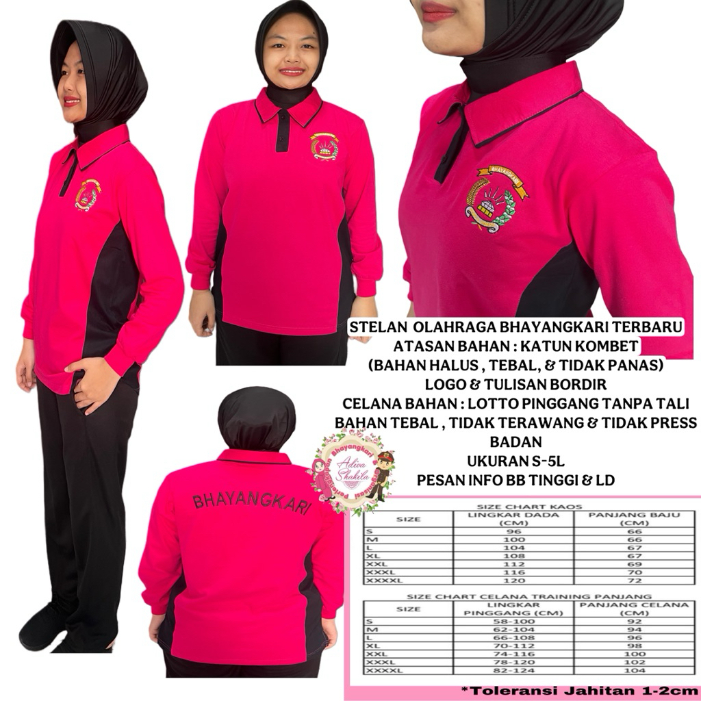 ADIVA - STELAN OLAHRAGA BHAYANGKARI PINK HITAM ATASAN KOMBET PAKAI / TIDAK PAKAI RIB TANGAN CELANA LOTTO TALI / PARASUT