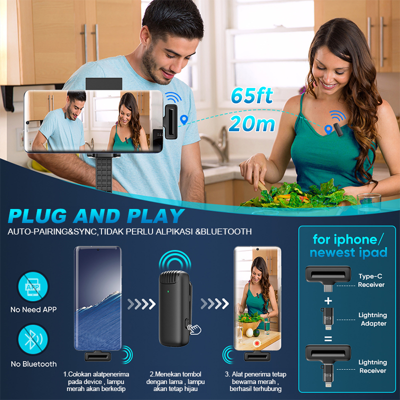 [k] INBEX IM4 Wireless Microphone 2-In-1 Clip On Mic Wireless Dual Lavalier Mikrofon Youtuber Facebook TikTok vlog with Charging Case