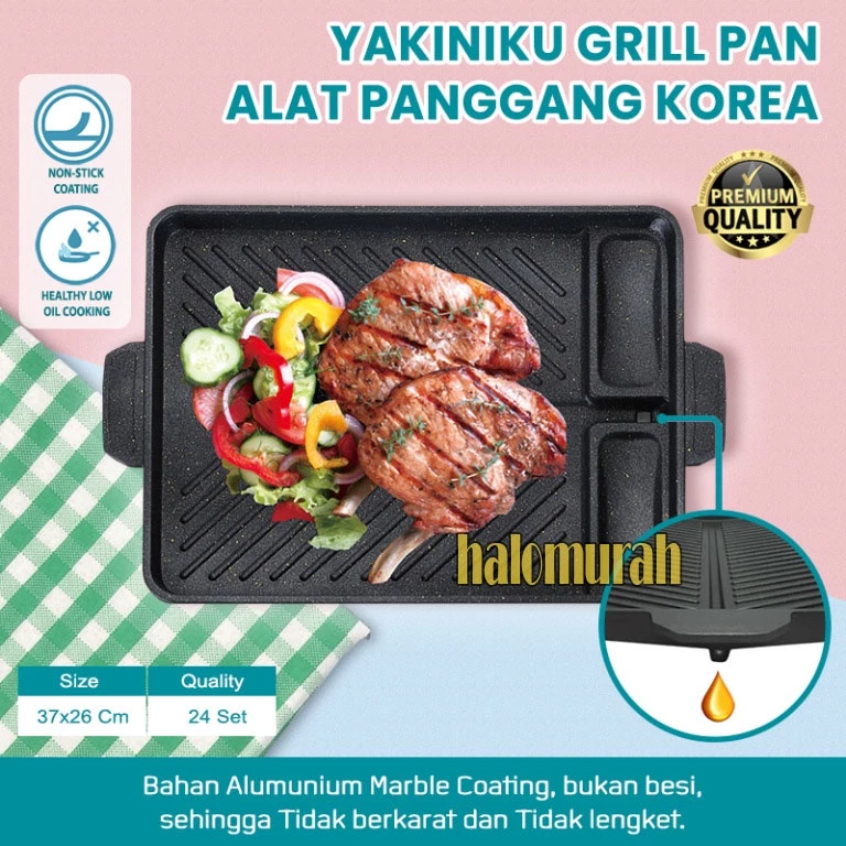 GRILL YAKINIKU ALAT PANGGANGAN BBQ PAN ALUMUNIUM Marble tidak akan berkarat - PANCI PEMANGGANG Tanpa arang WAJAN PANGGAN