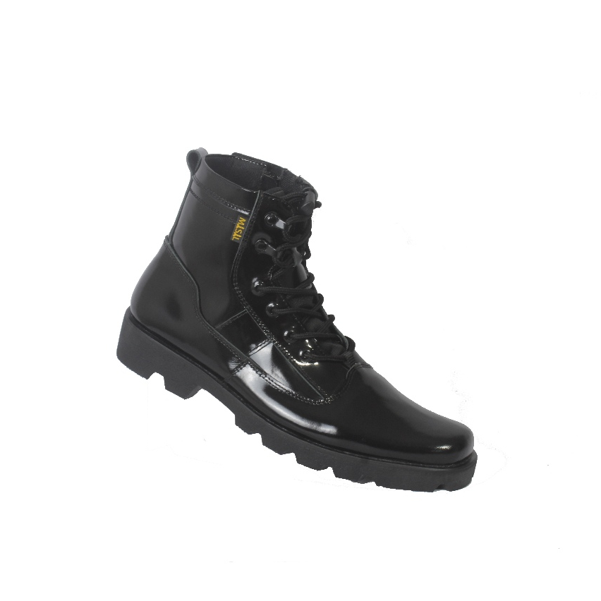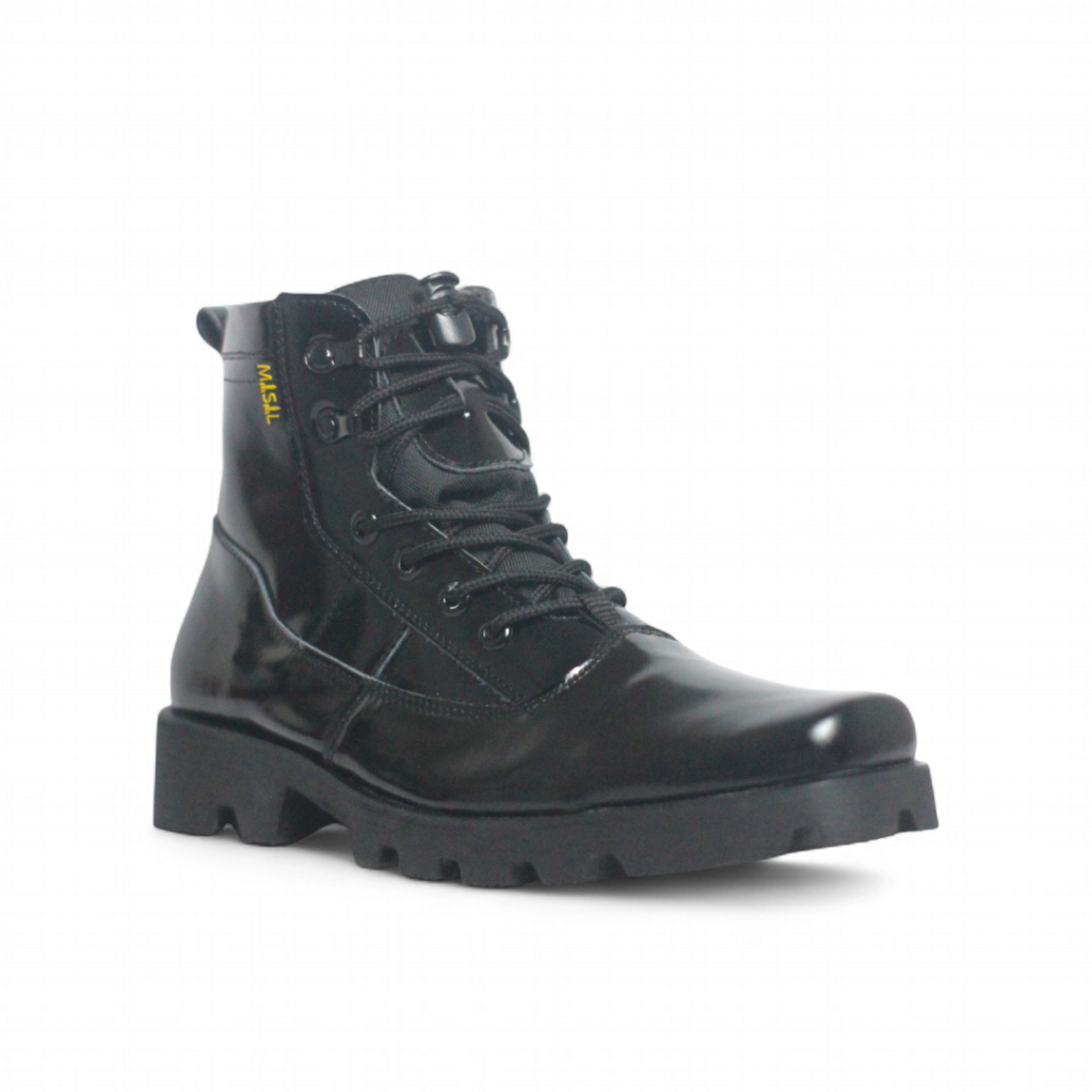 Sepatu PDH Pria Misil Dinas TNI Polri Satpam Security Xnova Kilap Kulit Sapi Asli Hitam Glossy
