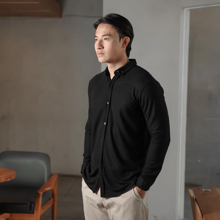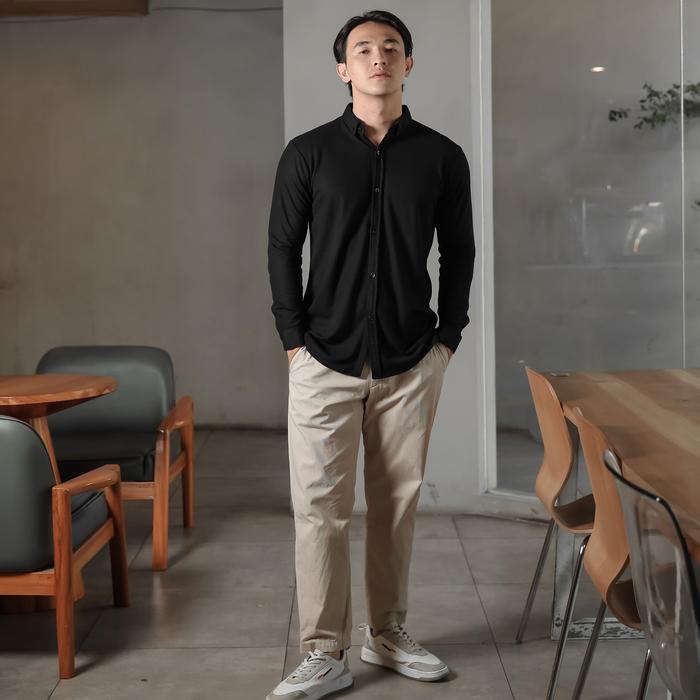KEMEJA HITAM PRIA FORMAL LENGAN PANJANG SLIM FIT ANTI KUSUT NYAMAN DAN LEMBUT - STYLELAKI LQUE - HITAM, M