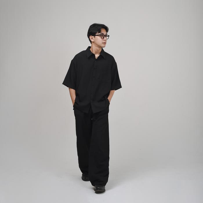 PILIANA KEMEJA OVERSIZE LENGAN PENDEK PRIA BLACK KEMEJA BOXY OVERSIZE - BROWN, S