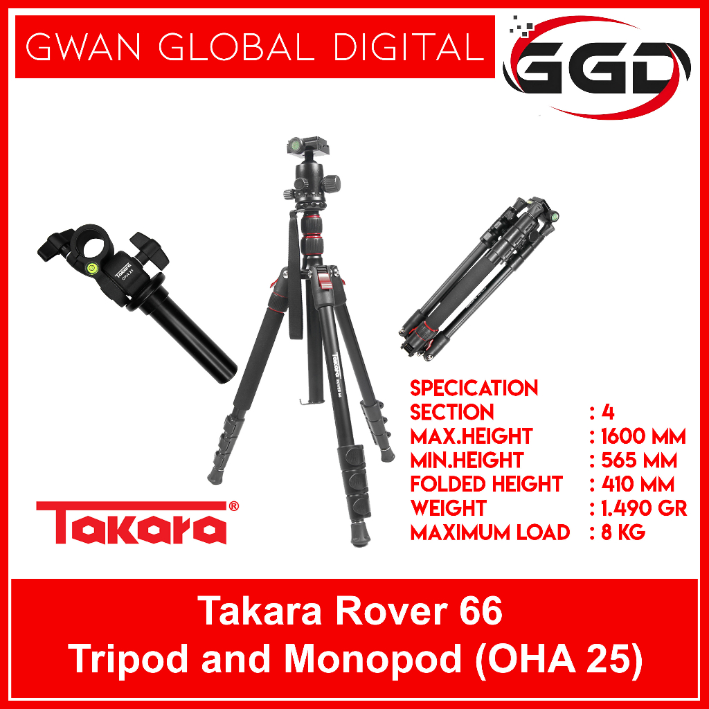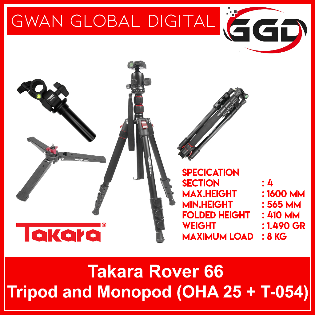 Takara Rover 66 Compact 2 in 1 Traveller Tripod Monopod Kit for Camera