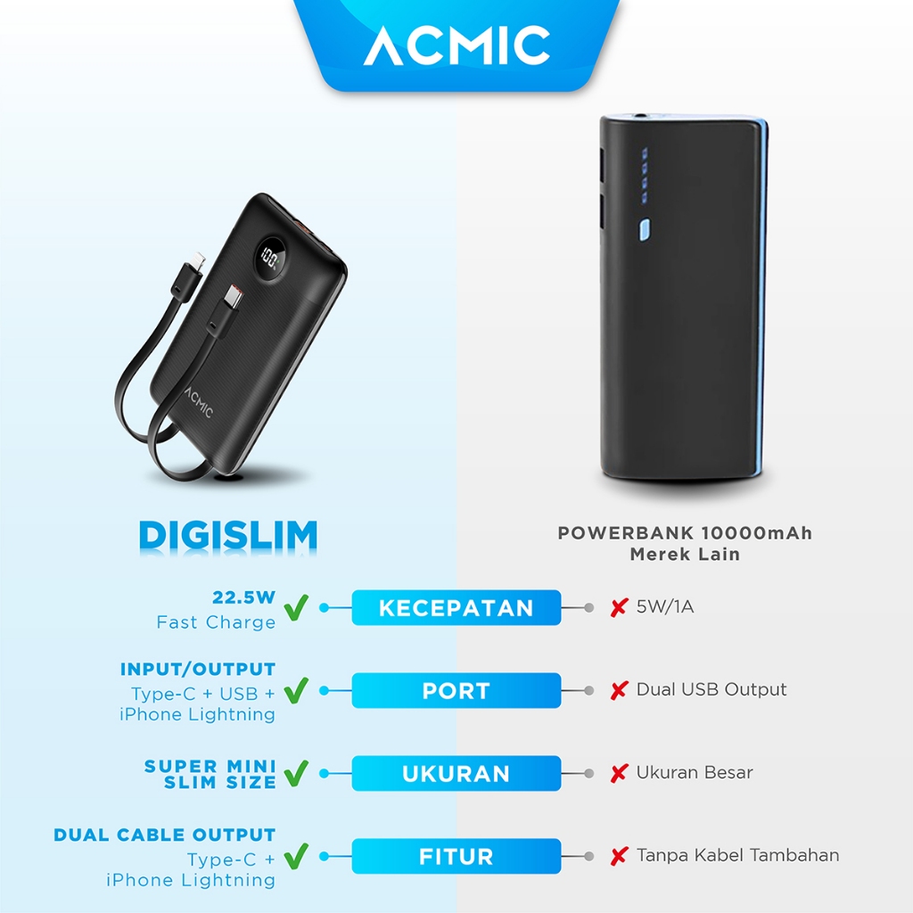 Acmic Digislim 10000Mah Powerbank Mini Slim 22.5W Fast Charging Type C