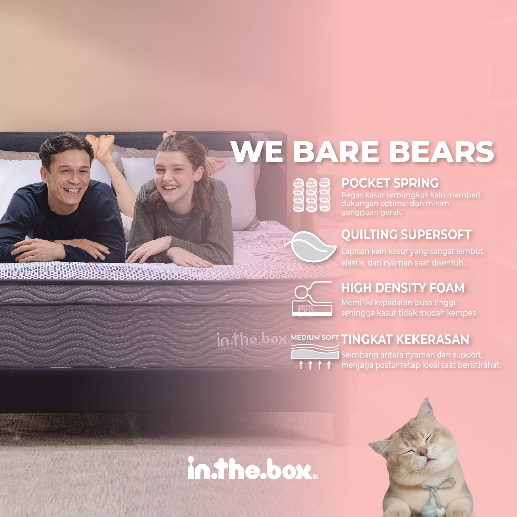 Kasur Anak Springbed INTHEBOX "We Bare Bear" Plush Top - FREE Bantal | Ukuran 90x200, 100x200, 120x200, 140x200, 160x200, 180x200, & 200x200