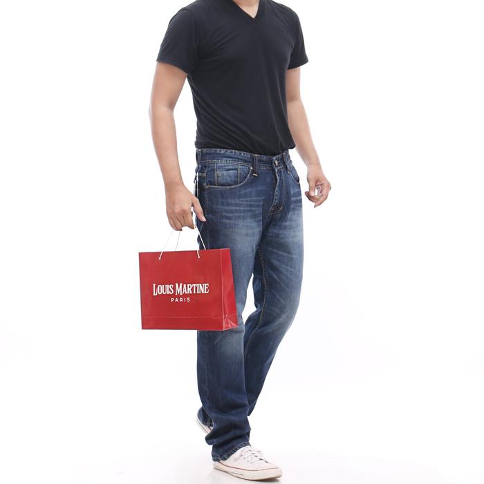 CELANA JEANS PANJANG ORIGINAL LOUIS MARTINE FASHION FOR MEN REGULER STANDAR PRIA NYAMAN DISTRO DENIM DEWASA COWOK KEREN LEMBUT - BIRU TUA, 28