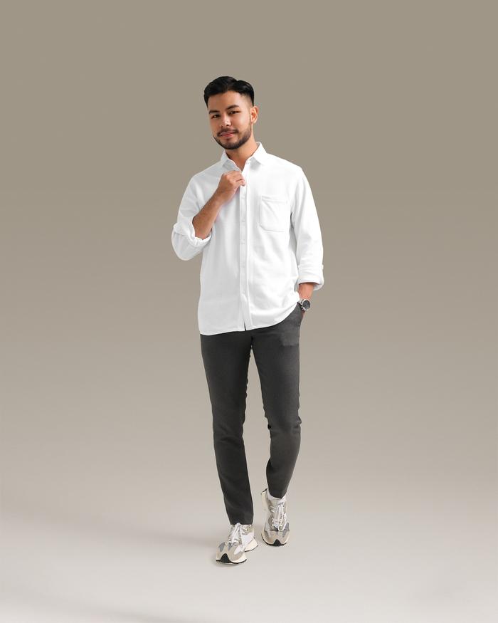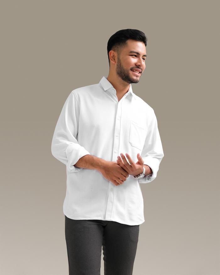 BROODIS KEMEJA PRIA LOS PUTIH COTTON SOFTEE WHITE LENGAN PANJANG SLIMFIT - SOFTEE NAVY, S