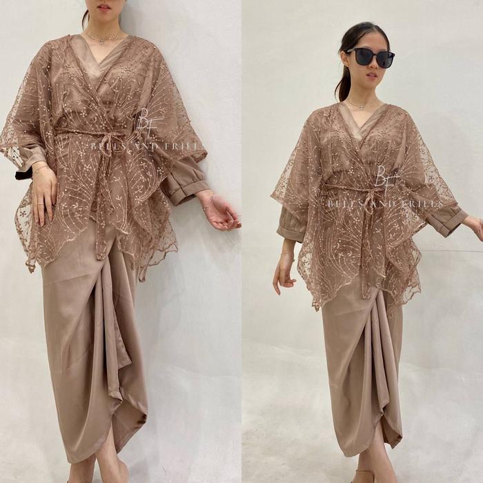 PAKET 4IN1 B&F - BUNDLE - NAURA + ZELA ONE SET ROK LILIT SATIN + KIMONO BLOUSE / SET SATIN WRAP SKIRT KONDANGAN / OUTFIT KONDANGAN / ONESET MODERN ELEGANT - ESPRESSO + GREYLILAC, ALL SIZE