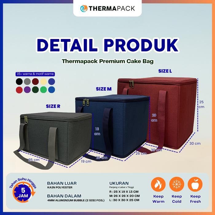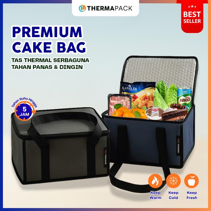 THERMAPACK PREMIUM CAKE BAG - COOLER BAG SERBAGUNA UNTUK KUE, DAGING, FROZEN FOOD, SAYUR, LUNCH BAG - HITAM, R (REGULAR)