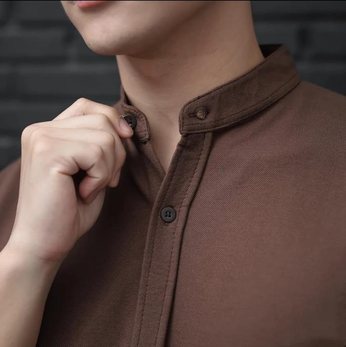 MUST KEMEJA SANGHAI PRIA LENGAN PENDEK BASIC LOS SEMI FORMAL KERJA STANDAR CASUAL SLIMFIT BROWN KEREN - BROWN, M