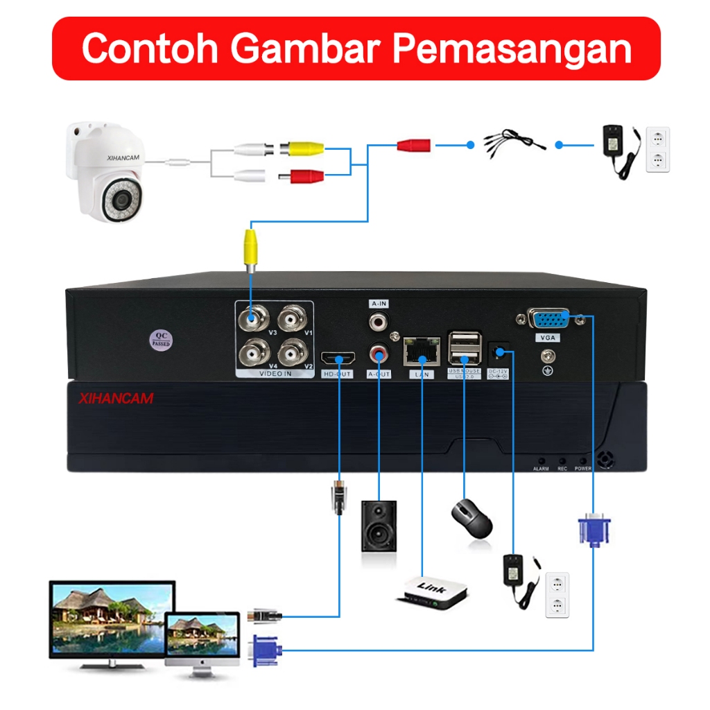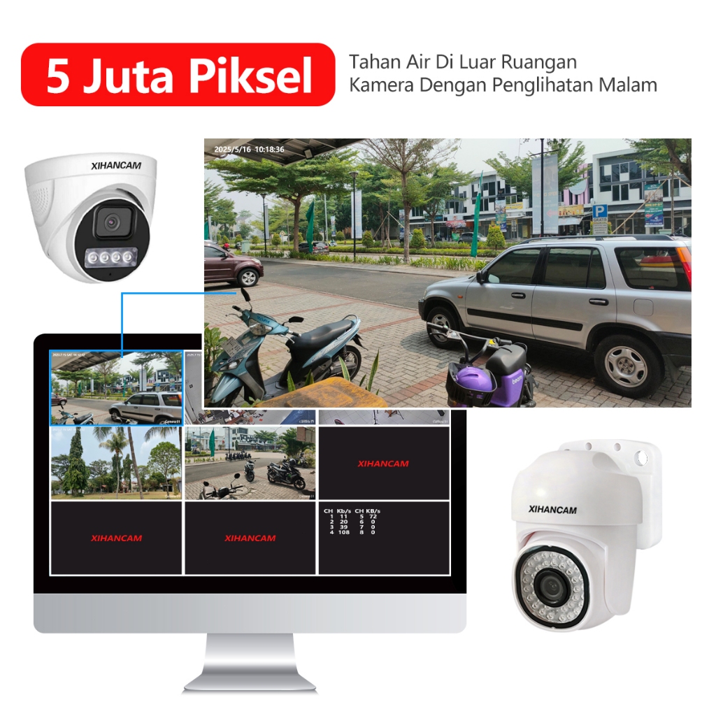XIHANCAM Paket Lengkap DVR CCTV 4 Channel 5MP Kit Kamera CCTV Analog PTZ Audio Komplit XVR CCTV 4CH