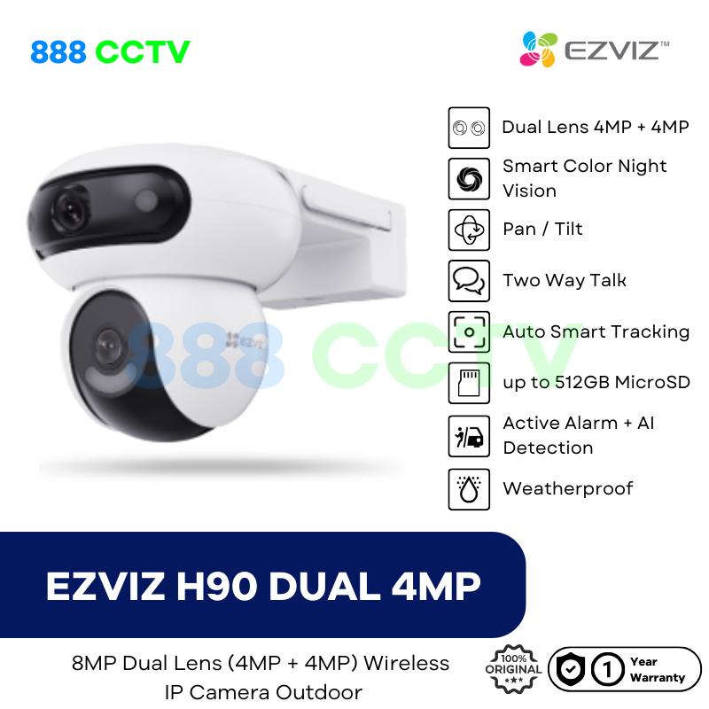 EZVIZ H90 4MP+4MP Dual-Lens Smart CCTV Wi-Fi Camera Outdoor Pan/Tilt