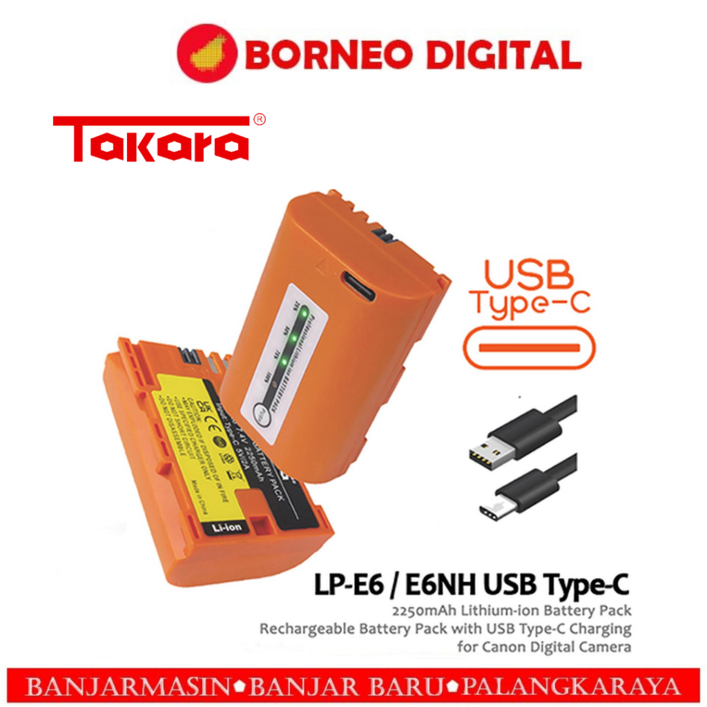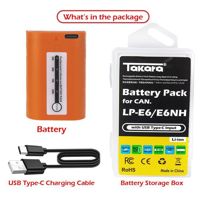 Takara LP-E6 / E6NH Battery Baterai with USB Type-C for CANON Camera