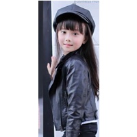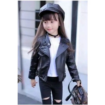 Jaket Semi Kulit Anak Perempuan Fashion Slim-Fitting Santai Polos