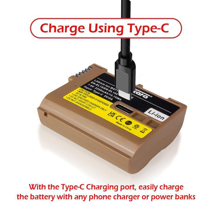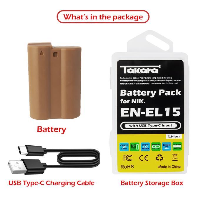 Takara EN-EL15 Battery Baterai Batere with USB Type-C for NIKON Camera