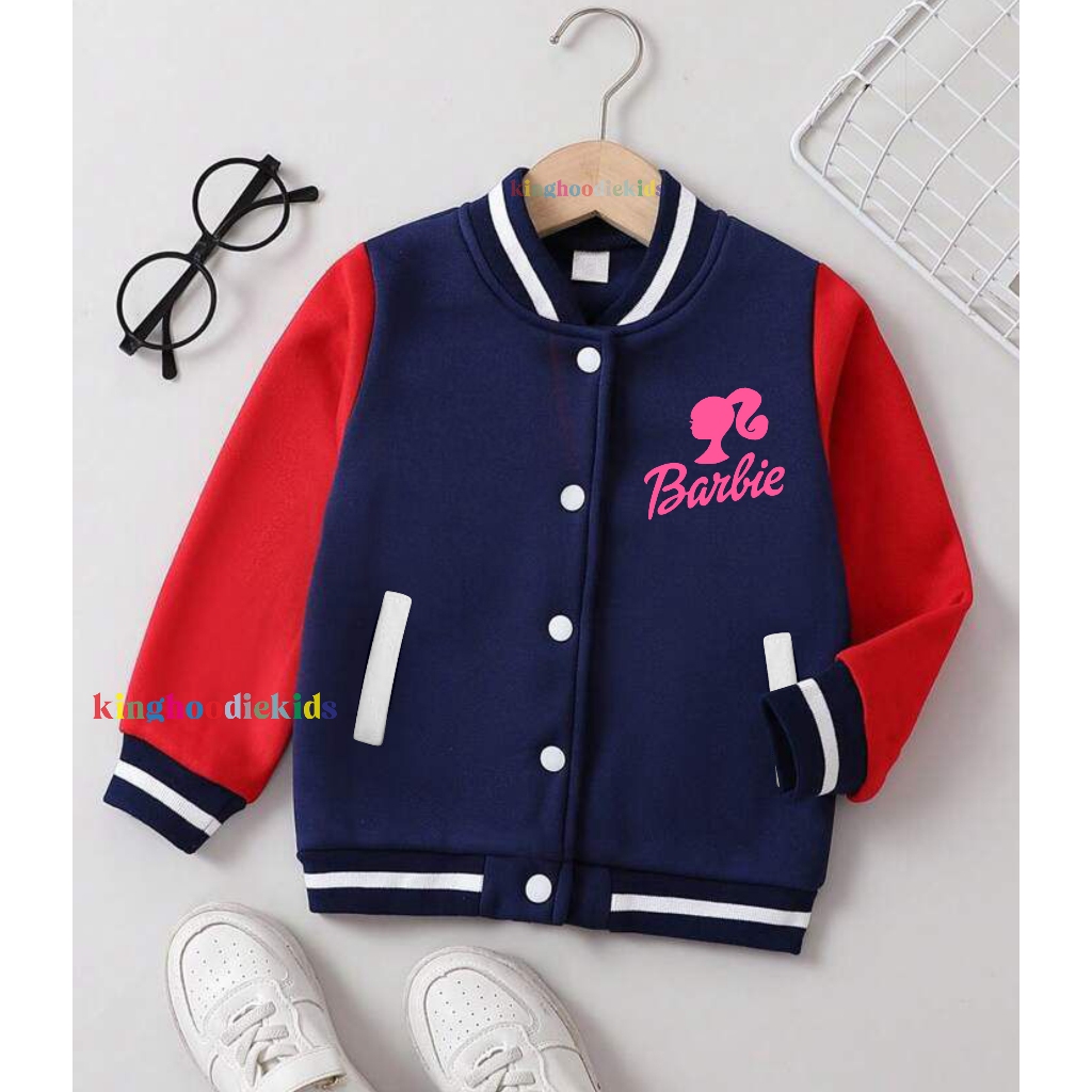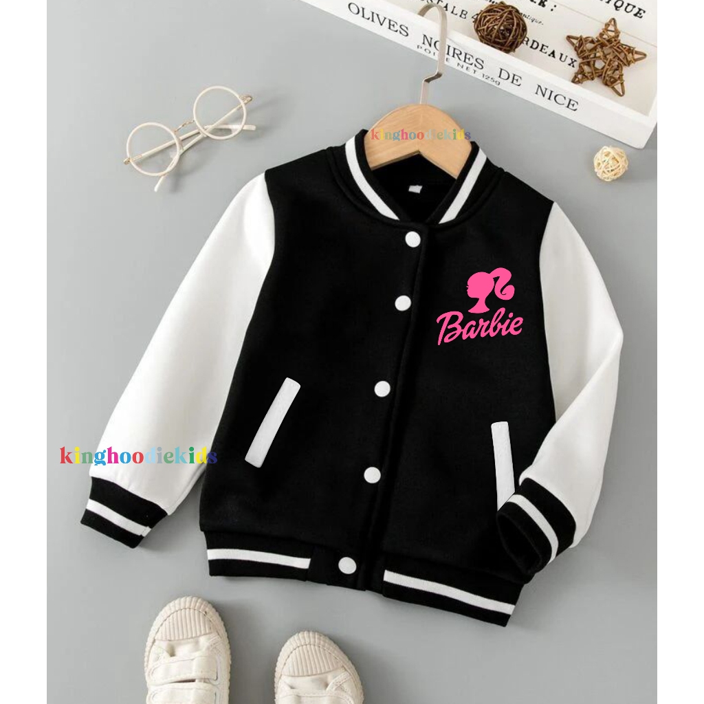 Jaket Varsity Anak Perempuan Barbie Umur 2 3 4 5 6 7 8 9 10 11 12 Tahun Jaket Baseball Anak Cewe Unisex/Hoodie Swaeter B