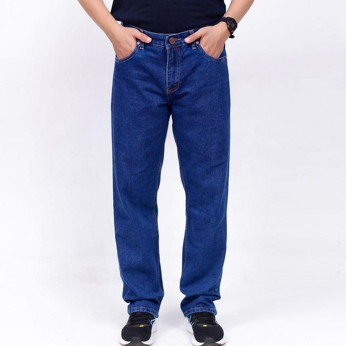 CELANA JEANS PANJANG PRIA STANDAR REGULER STRAIGHT MODEL LOOSE KOREAN STYLE BASIC DENIM SIZE 28-38 DEWASA - BLACK, 28