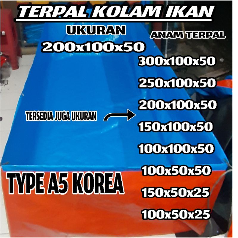 Terpal Kolam Ikan 200x100x50 A5 Korea Biru Silver
