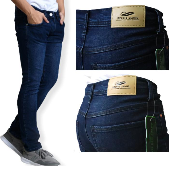CELANA JEANS PRIA SLIMFIT PANJANG ORIGINAL RELGIG SANTAI - HITAM , S 27/28