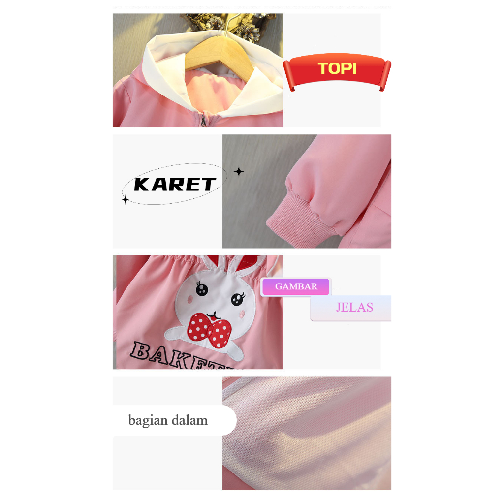 Jaket Zipper Hoodie Kelinci Terbaru / Outer Anak Perempuan Motif Kelinci / Jaket Anak Perempuan Bahan Parasut Semi Katun
