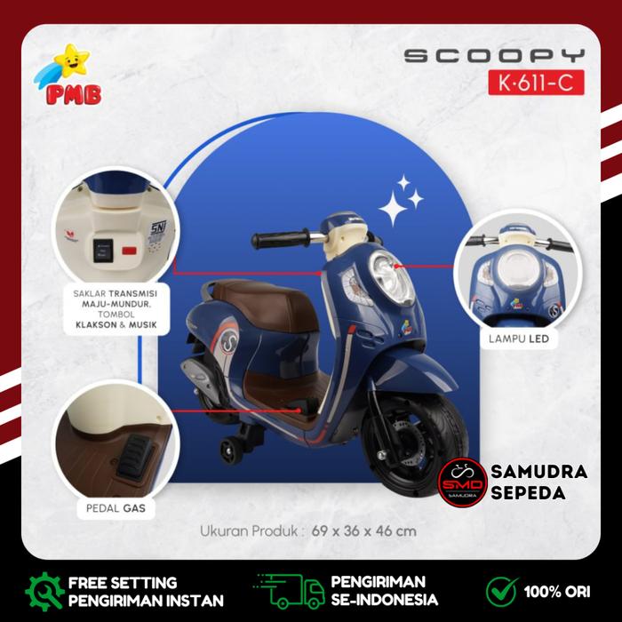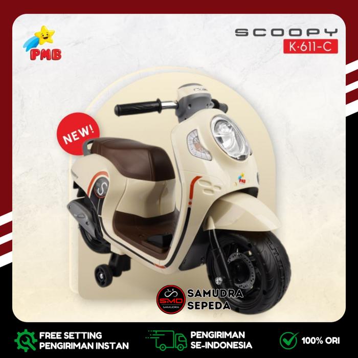 Motor Aki Mainan Anak Cas Listrik PMB K611C // K611 Scoopy Mini 6v Murah BDG - Putih