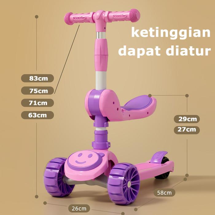 Mainan Skuter 2in1 Mainan Scooter Anak Roda 3 dengan Dudukan + Lampu Pada Roda 2-12Tahun - Smile Pink A