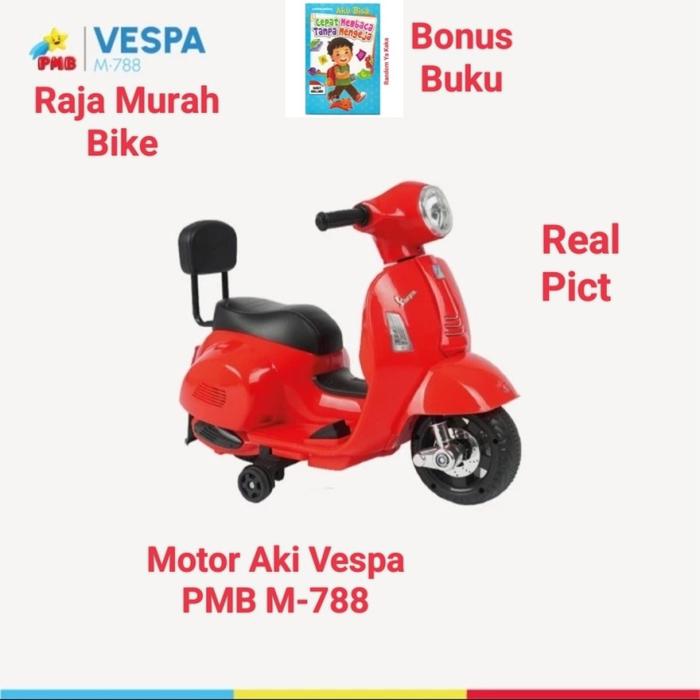 Motor Aki Vespa Pmb M-788 Mainan Anak Motor Vespa Aki Motoran Aki Pmb M788 Vespa - Merah