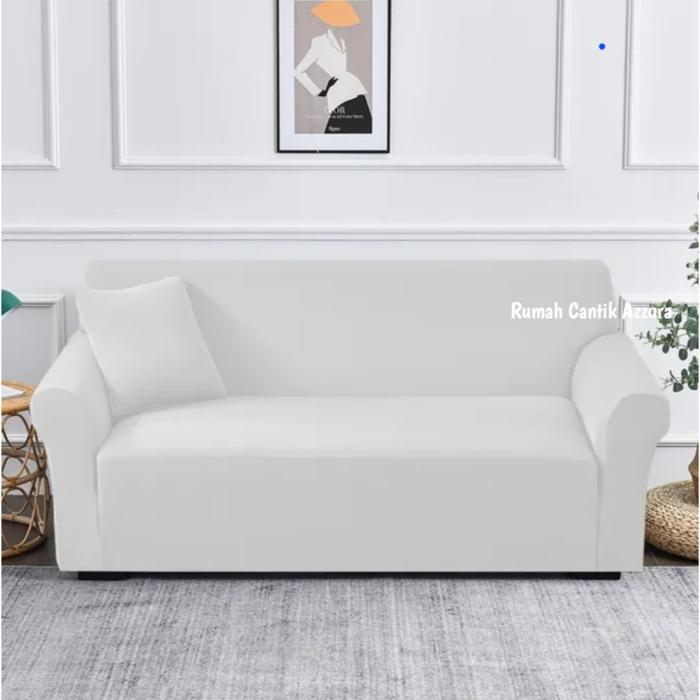 Cover Sofa Elastis Premium Sarung Sofa 1 2 3 4 Seater Polos Alas Penutup Bungkus Kursi Sofa Tamu - WHITE 1 SEATER 1pcs