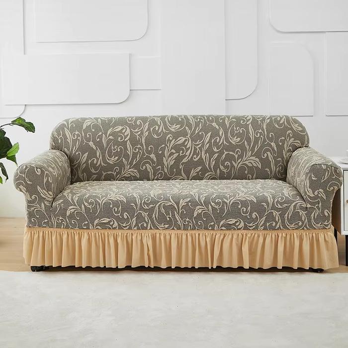 Elastic Sofa Cover With Skirt / Sarung Alas Penutup Sofa Renda Elastis Corak Motif kain - Abu muda Skirt 2 Seater