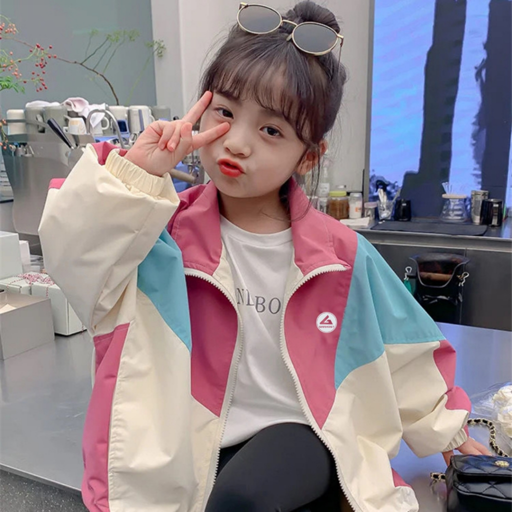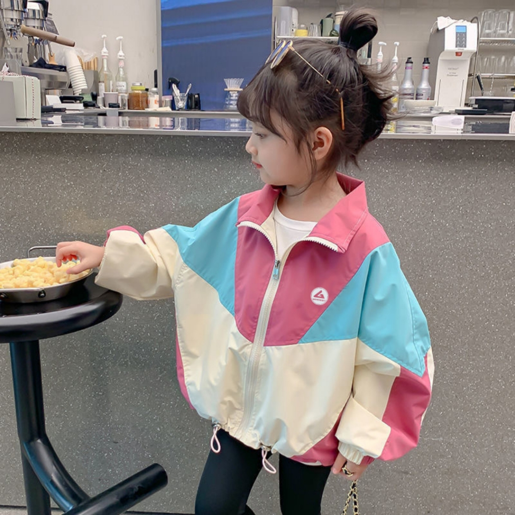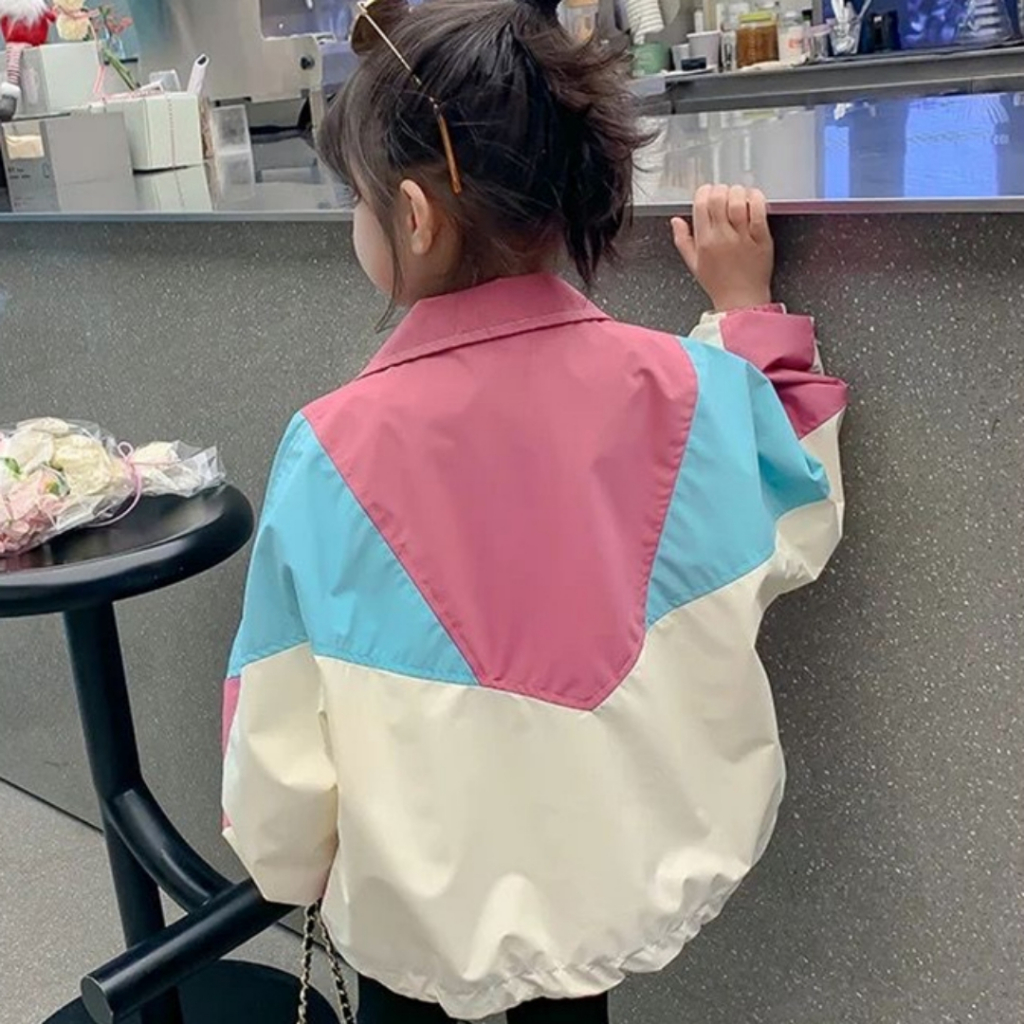 Jaket Vintage Colorblocking Anak Perempuan Usia 2-9 Tahun Mantel Anak