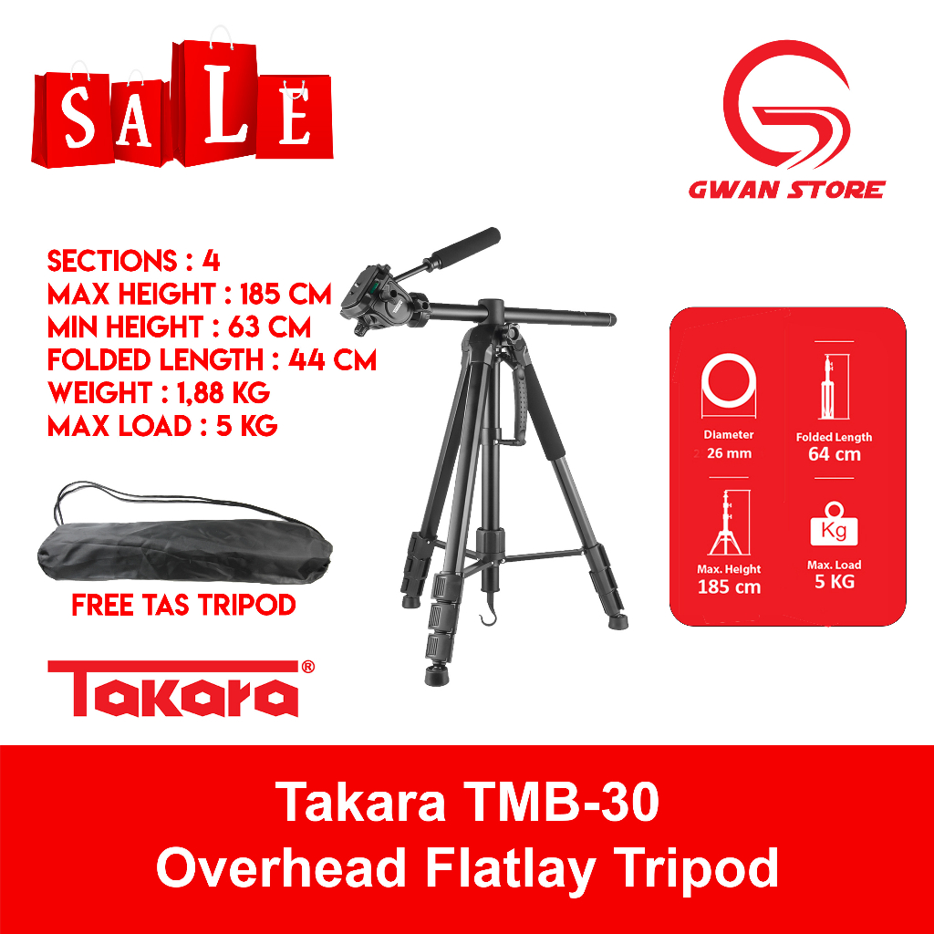 Takara TMB 30 Overhead Flatlay Tripod Monopod with Fluid Video Head