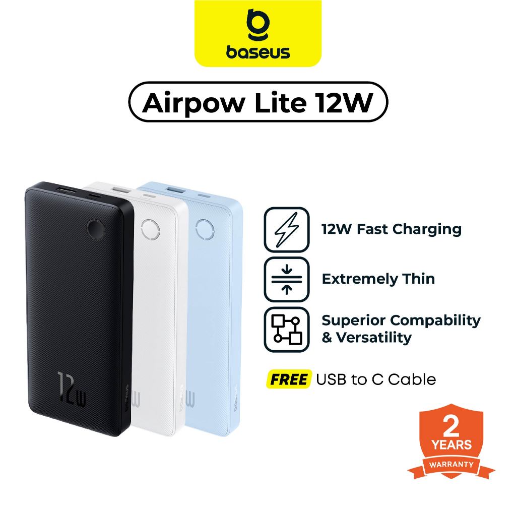 Baseus Powerbank Airpow 10000Mah 12W Fast Charging 3A + Cable Usb To Type-C Power Bank