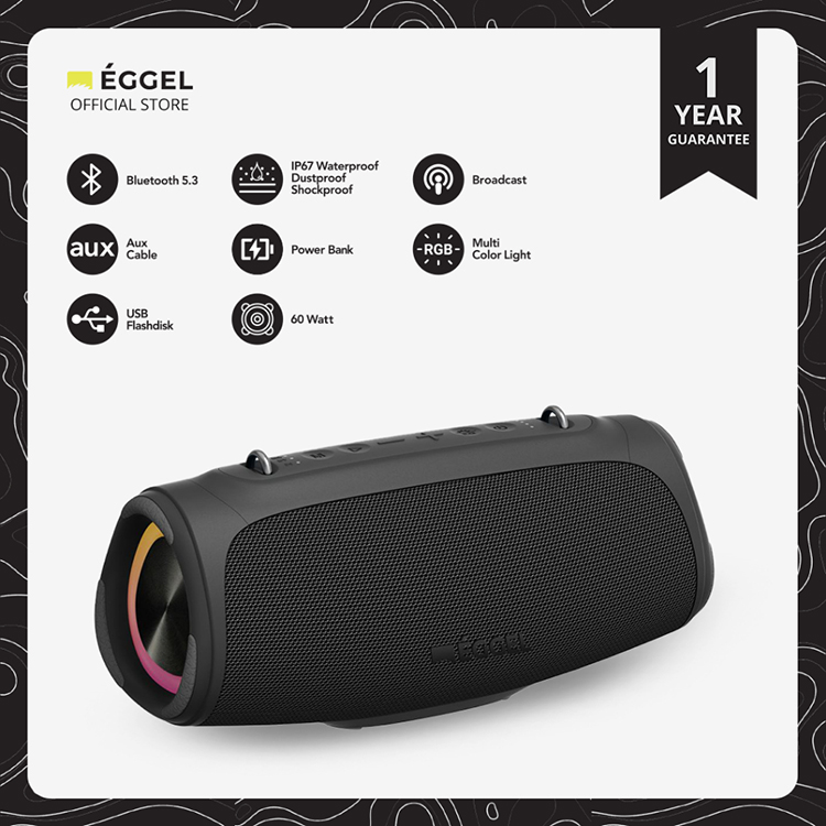 Eggel Terra 3 Max Waterproof Bluetooth Speaker with RGB Lights/Radio Usb Super Bass /Musik Box Bluetooth Full Bass