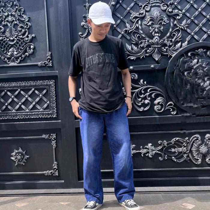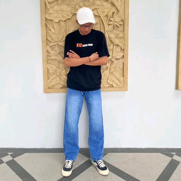 CELANA JEANS PRIA PANJANG KOREAN STYLE OVERSIZE LOOSE CELANA KULOT GOMBRANG DENIM NYAMAN - CREAM, M