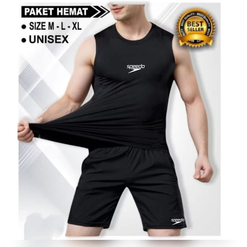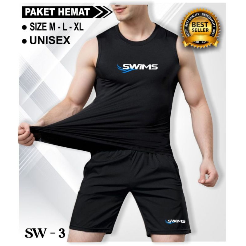 Paket hemat baju renang kaos singlet pakaian renang dan Celana renang pria dewasa tidak ketat fast dry L - XXL pakaian b