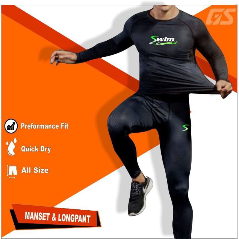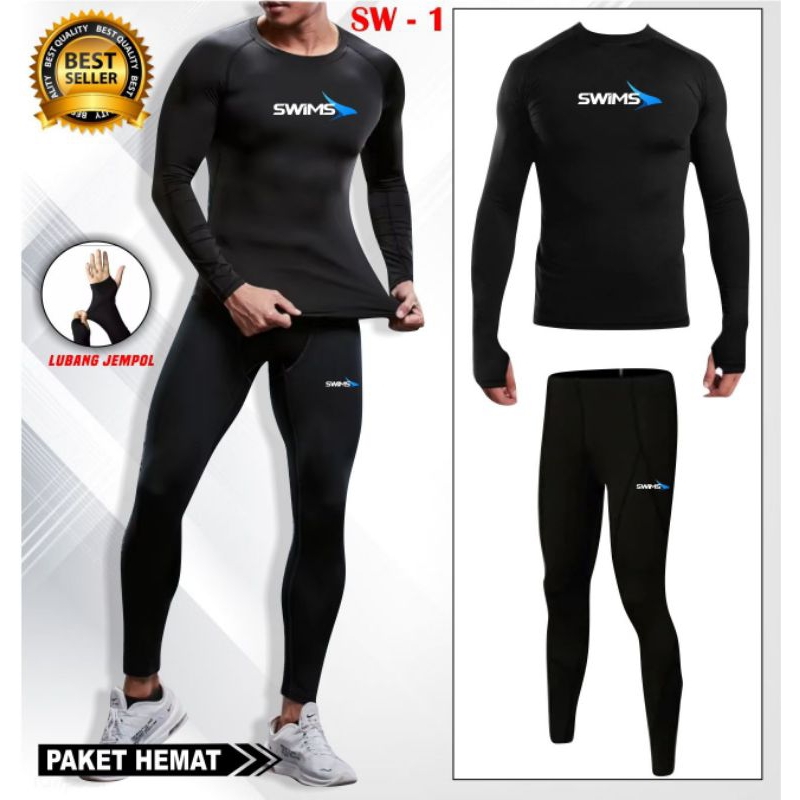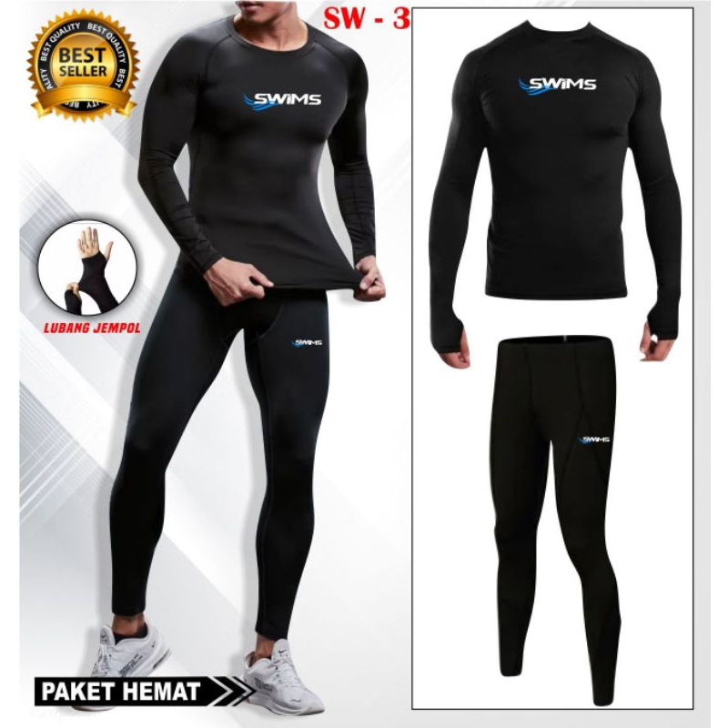 PAKET HEMAT SETELAN BAJU RENANG LENGAN PANJANG CELANA RENANG PANJANG PAKAIAN MANSET BASELAYER PANJANG DEWASA PRIA WANITA