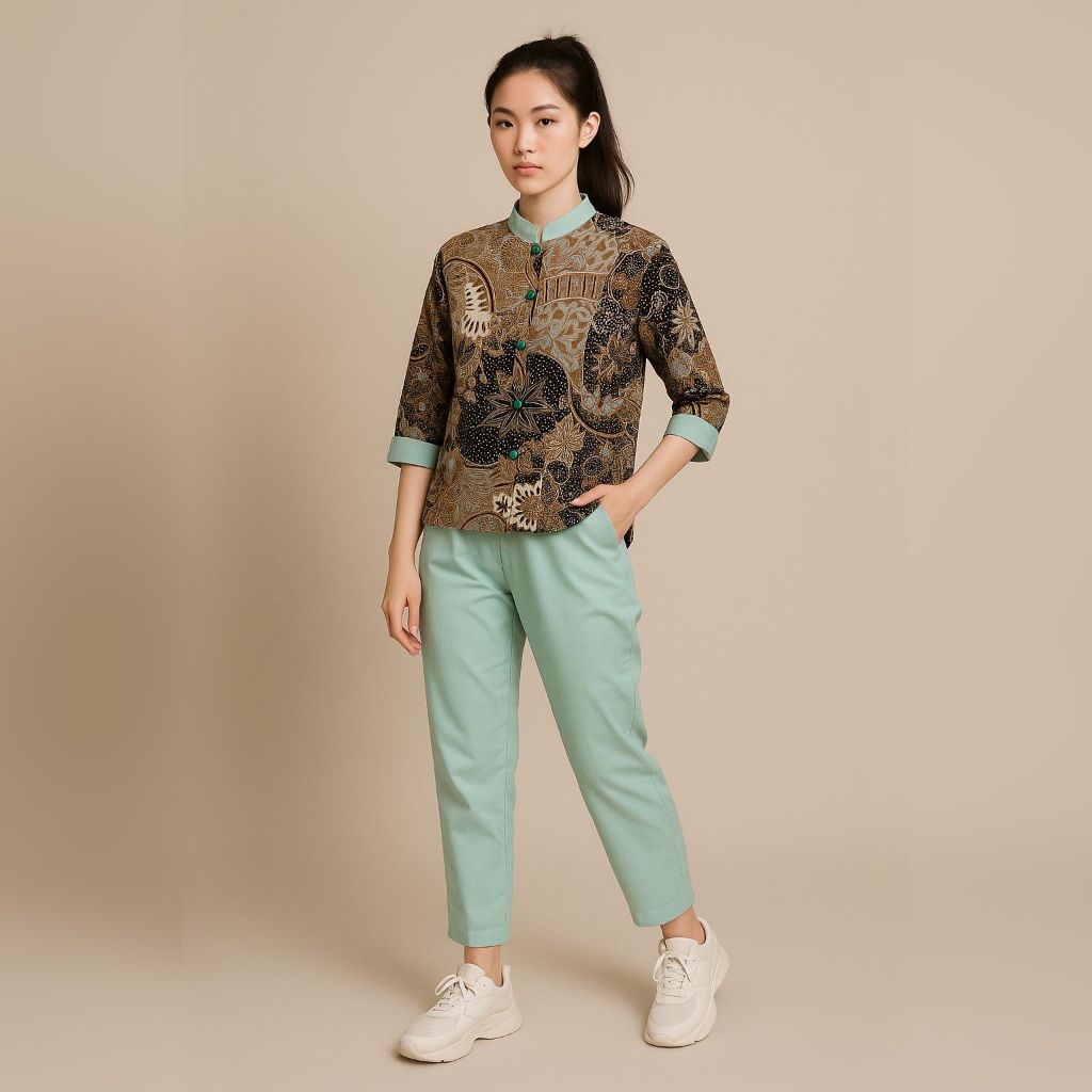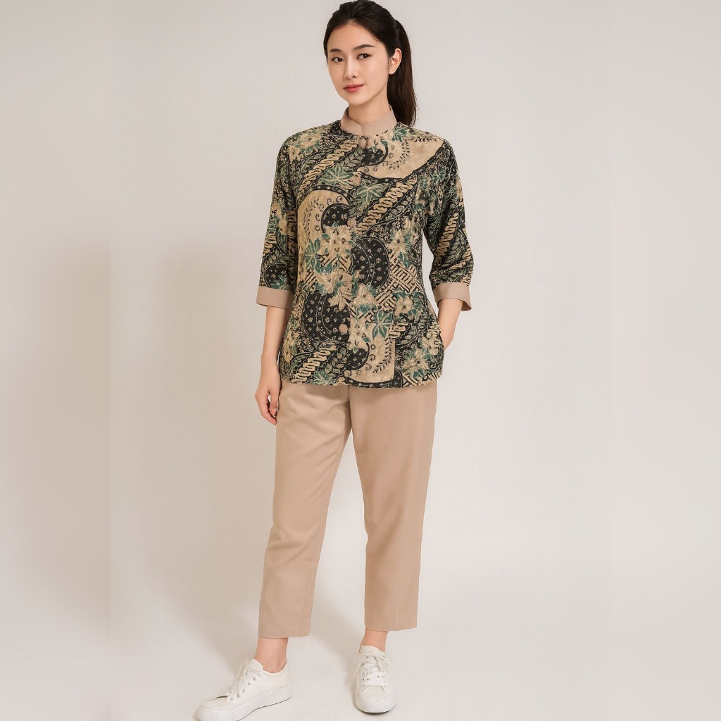 Lune Aurora Oriental Set Seragam Suster Batik shanghai Lengan 7/8 | Seragam Perawat/Babysitter