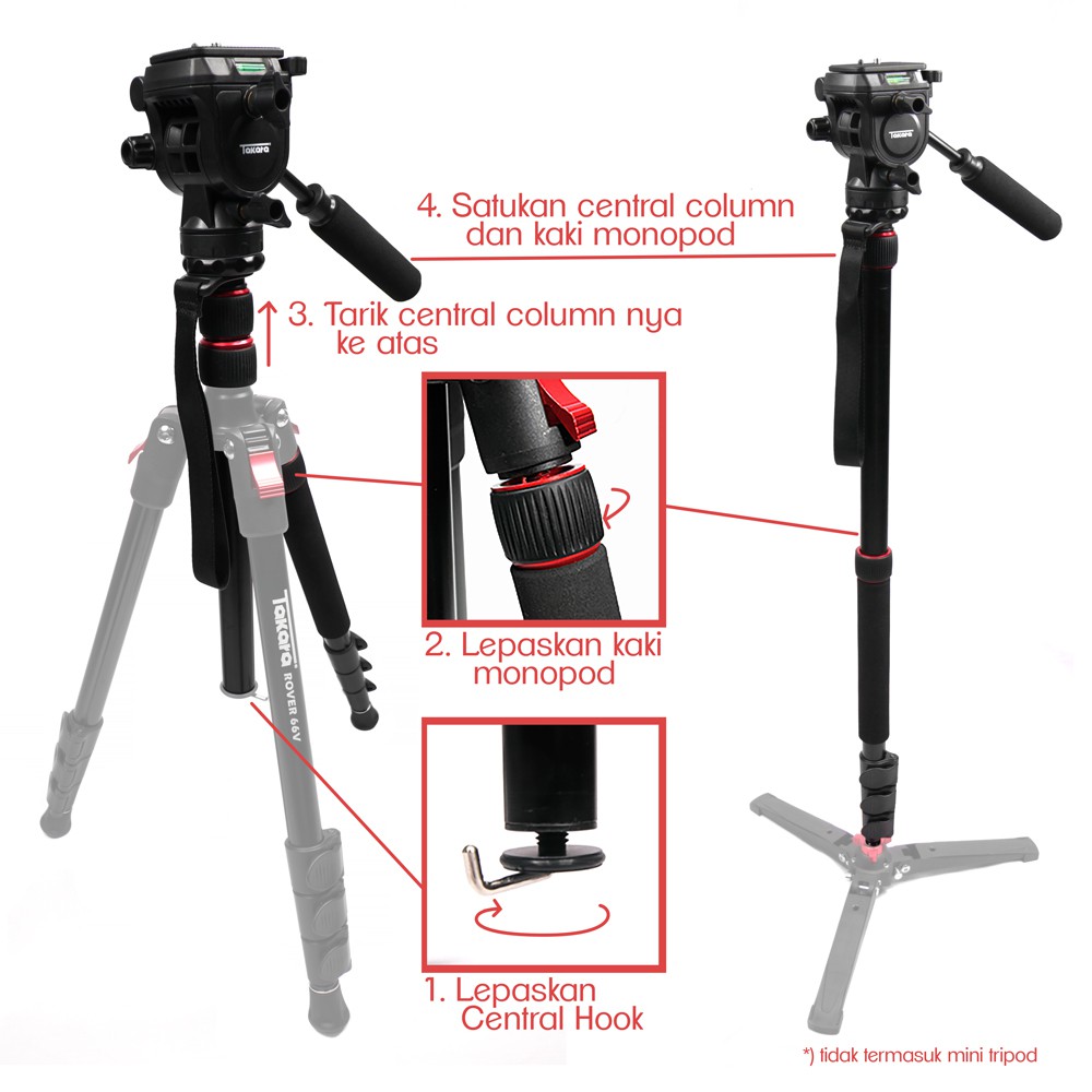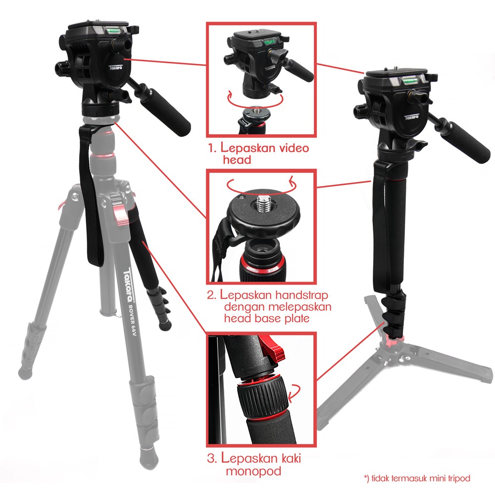 Takara Rover 66V Fluid Head Compact 2 in 1 Traveller Tripod Monopod Kit
