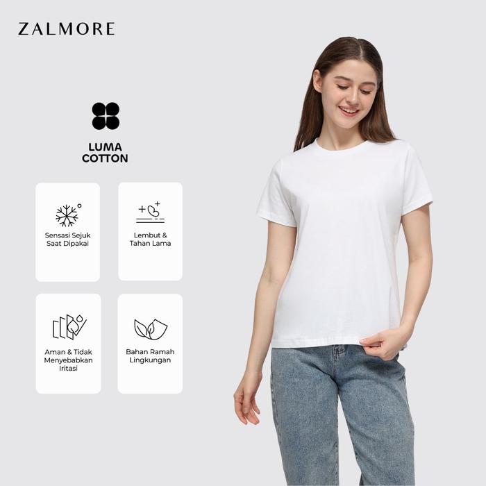 ZALMORE WOMEN ONECK T-SHIRT BASIC PREMIUM LUMA COTTON - KAOS WANITA LEMBUT RINGAN SEJUK ANTI NERAWANG - WHITE, S