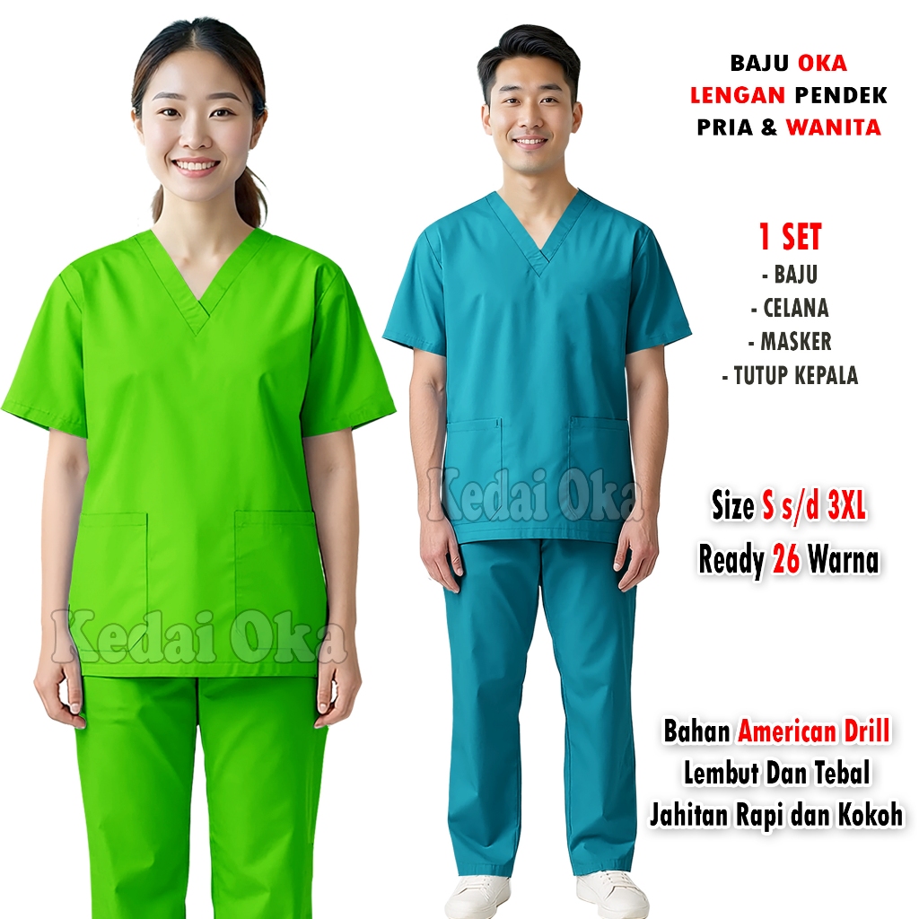 Baju Oka Lengan Pendek Pria dan Wanita - Baju Jaga dokter Perawat Ok - Baju Stenen - Scrub Oka Bidan - Baju Baby Sitter