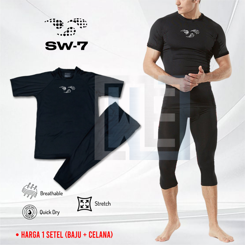 Setelan renang dewasa pria wanita baju renang lengan pendek setelan renang 3/4 unisex pakaian renang ekonomis termurah w