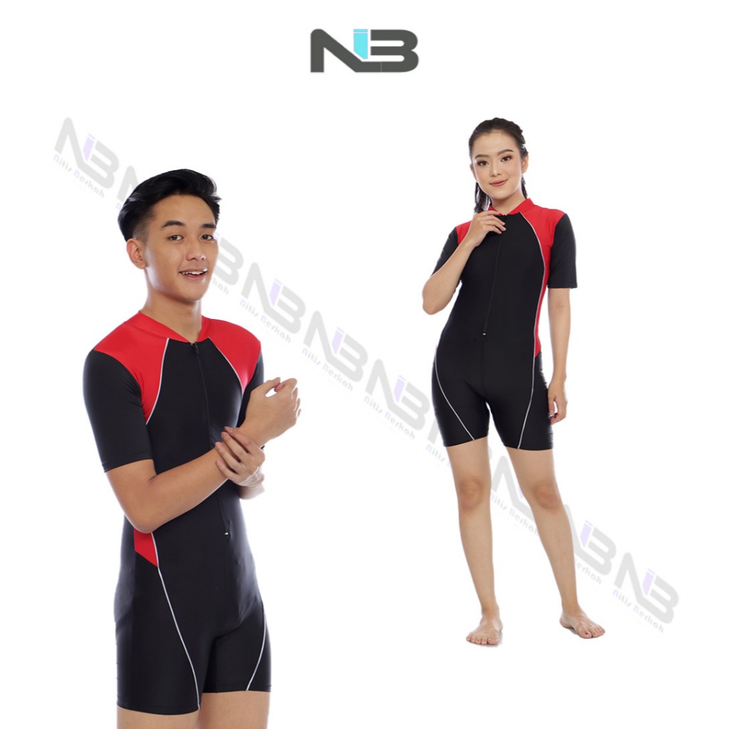 NIBER Baju Renang laki laki dan perempuan Remaja-Dewasa,Baju Renang Terusan Pendek Ziper Depan,bb 40-75kg