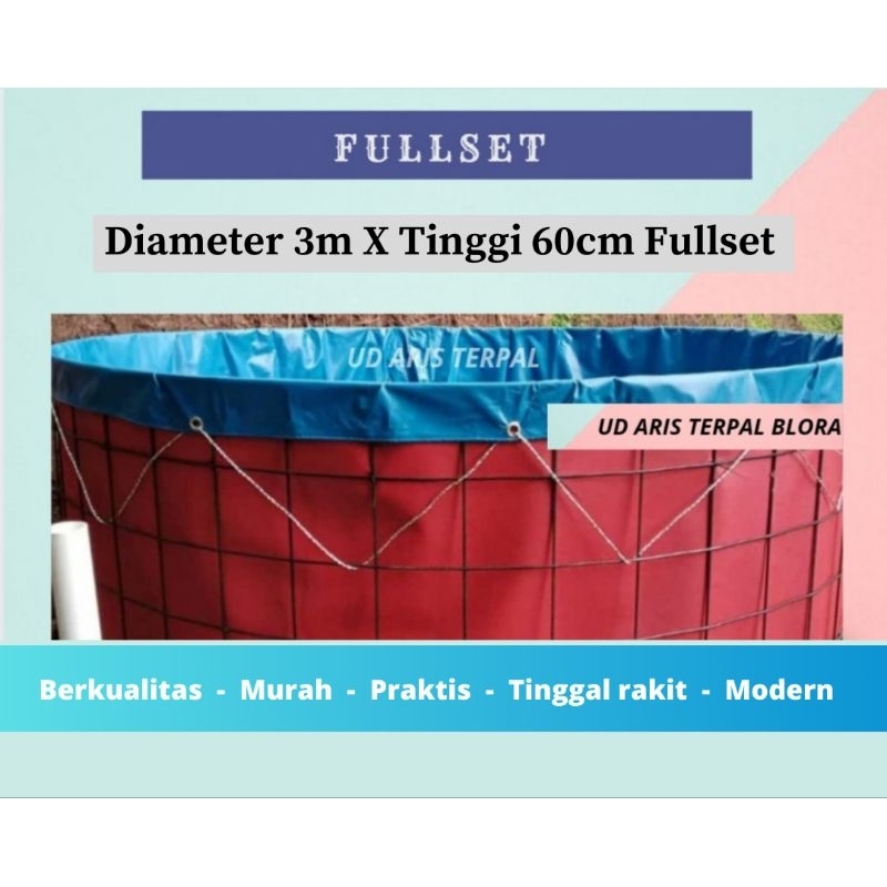 Kolam Terpal Bulat Fullset Diameter 3m x Tinggi 60cm