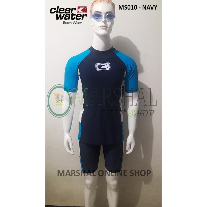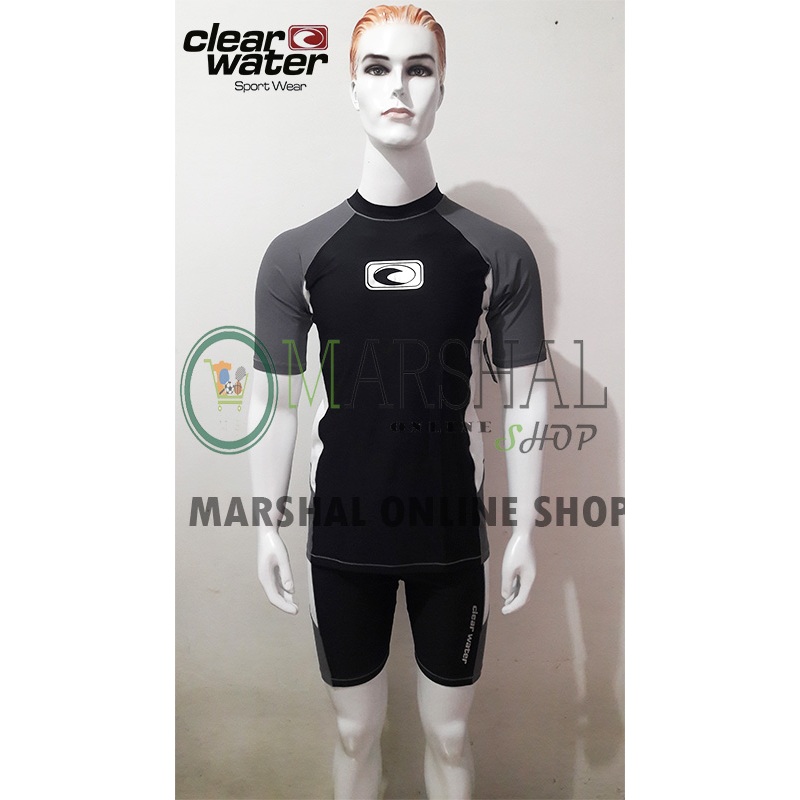 Set Setelan Baju Celana Renang Pendek Pria Clear Water Lycra Cepat Kering Rashguard Rash Guard Bonus Kacamata Renang