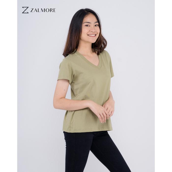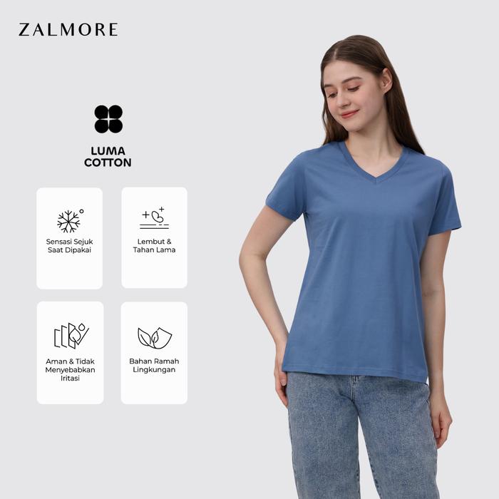 ZALMORE WOMEN VNECK PASTEL SERIES T-SHIRT PREMIUM LUMA COTTON - KAOS WANITA LEMBUT RINGAN SEJUK ANTI NERAWANG - WDER BLUE, S