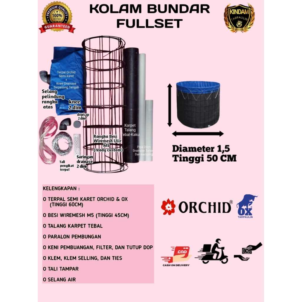 TERPAL KOLAM BUNDAR FULLSET D1,5 x T 50 CM TINGGAL PASANG LENGKAP