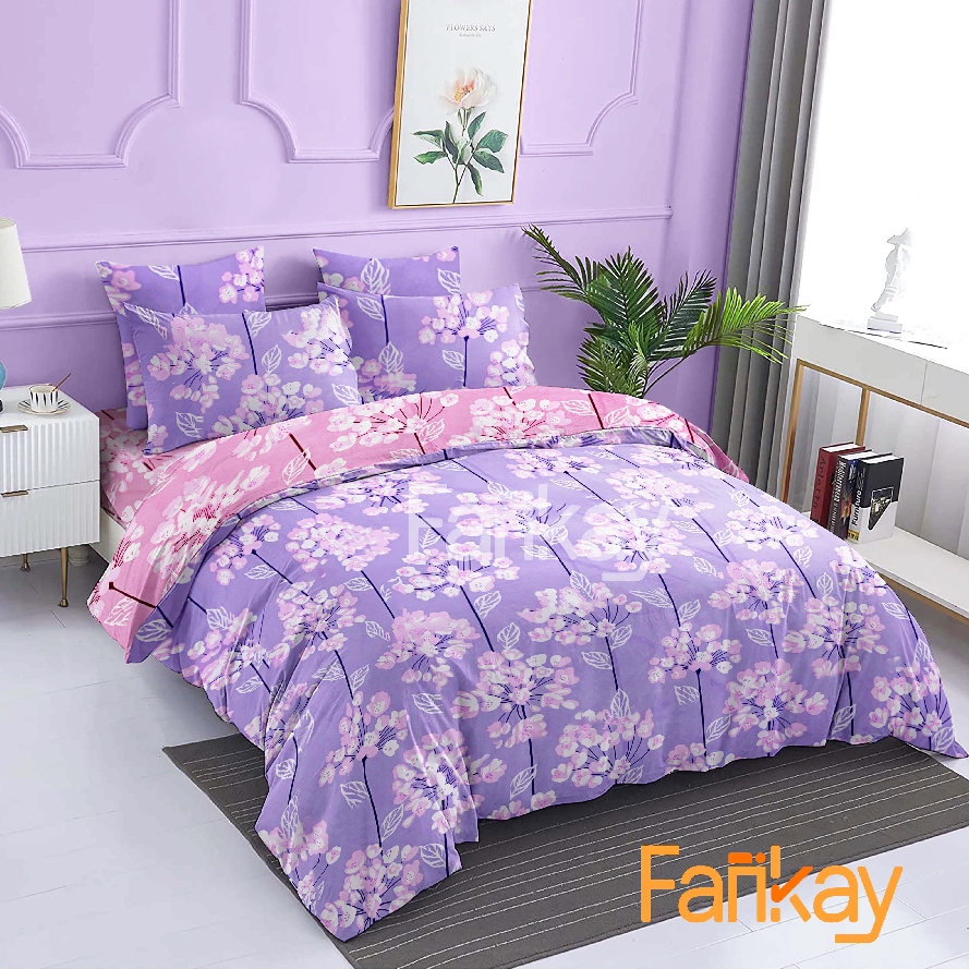 Bed Cover Set Sprei Popy Lilac Mix Popy Pink Ukuran Lengkap 180x200/160x200/120x200 - Fankay Bedcover